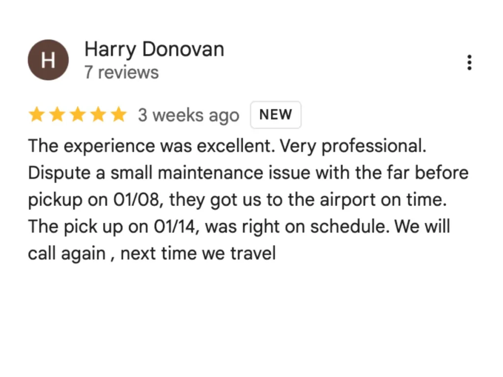 Yes. We provide corporate airport transportation accounts and recurring scheduling for executives and frequent travelers.